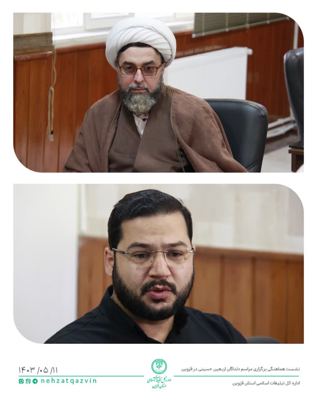 با نزدیک شدن به ایام معنوی و پربرکت اربعین حسینی (ع)، دومین نشست هماهنگی برای برگزاری مراسم بزرگ و باشکوه اربعین حسینی، با عنوان "دلدادگان" در استان قزوین برگزار شد. این نشست در محل اداره کل تبلیغات اسلامی استان قزوین و با حضور مسئولان و دستاندرکاران اجرایی برگزار شد.