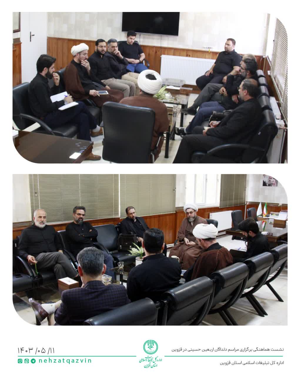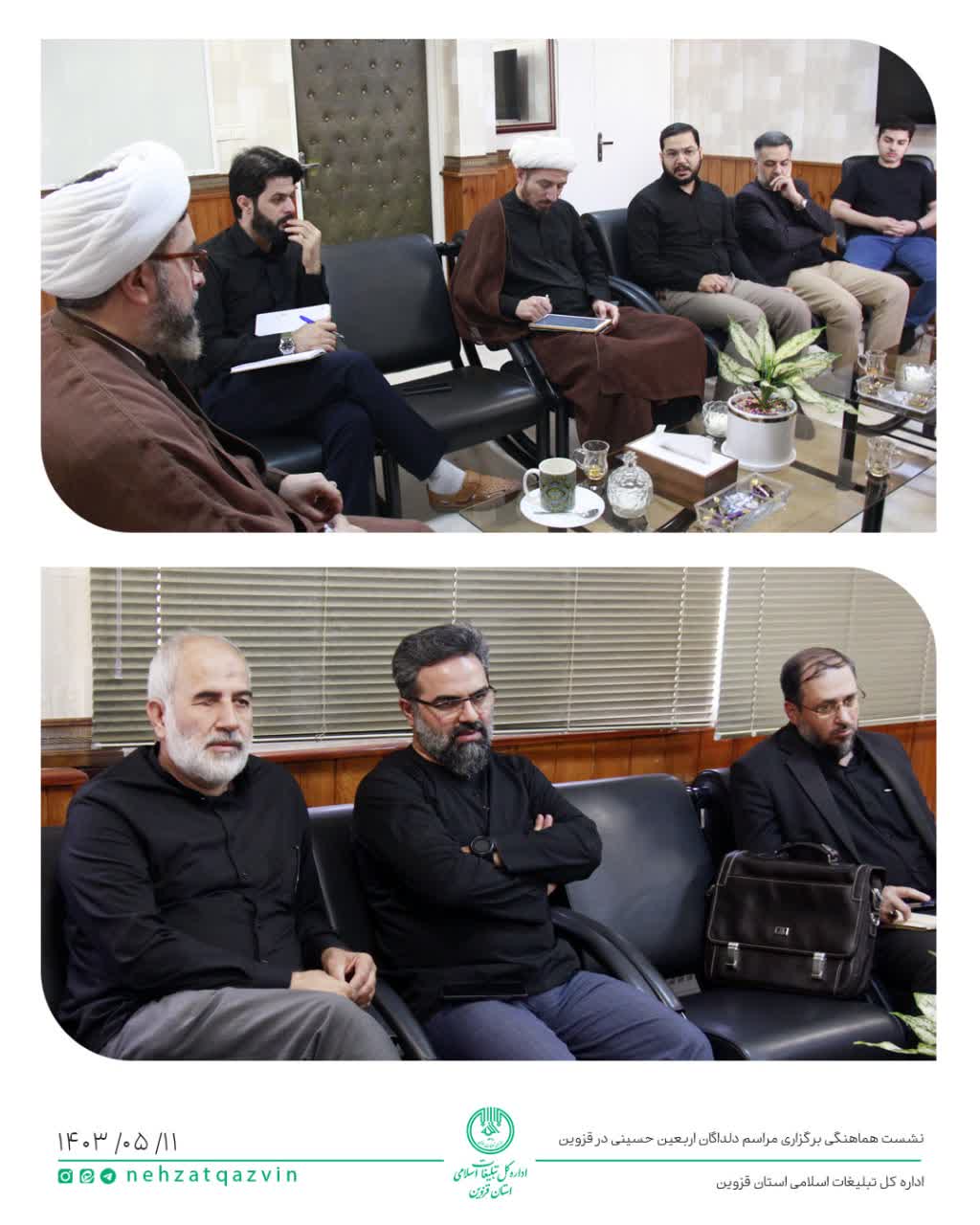 مکان این نشست در اداره کل تبلیغات اسلامی استان قزوین بود و در آن تلاش شد تا با همفکری و همکاری تمامی نهادهای مرتبط، زمینههای لازم برای برگزاری هرچه با شکوهتر این مراسم فراهم شود تا زائران حسینی بتوانند در فضایی معنوی و امن به زیارت و عزاداری بپردازند.