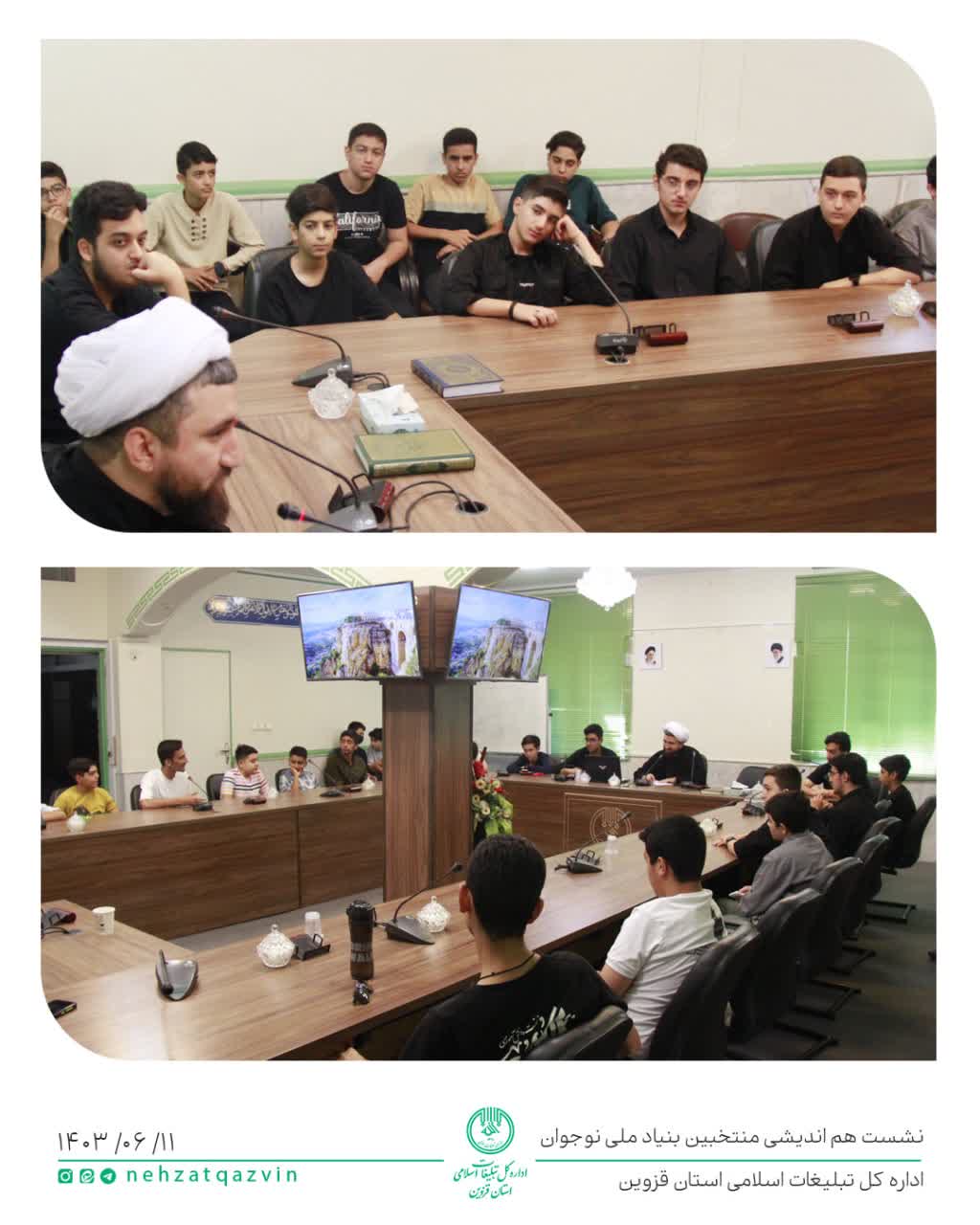 نشست هم اندیشی منتخبین بنیاد ملی نوجوانان استان قزوین با موضوع انتخاب هسته مرکزی اتاق فکر نوجوانان و برنامه ریزی جهت برگزاری برنامه های شش ماه دوم سال با حضور حجت الاسلام باباشاه وردی مسئول بنیاد ملی نوجوان استان قزوین