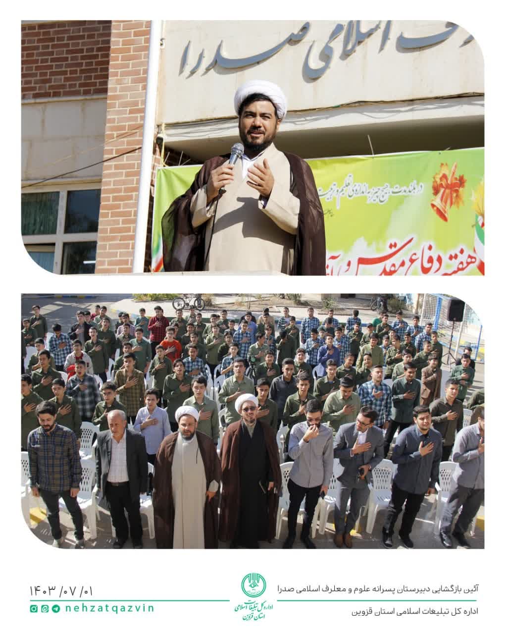 همزمان با هفته دفاع مقدس و آغاز سال تحصیلی و بازگشایی مدارس، زنگ مهر در دبیرستان پسرانه علوم و معارف اسلامی صدرای قزوین توسط حجتالاسلام محمدحامد مبینی، قائم مقام سازمان مدارس صدرا نواخته شد و دانش آموزان راهی کلاس درس شدند.