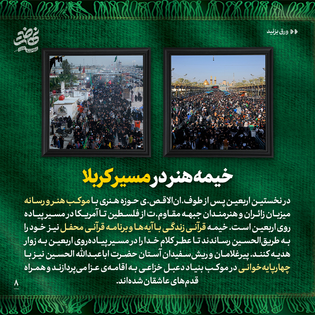 به بهانه ایام اربعین حسینی مروری میکنیم بر برخی از تلاشهای خانوادهی سازمان تبلیغات اسلامی که هریک عرض ارادتی است به ساحت والا حضرت سیدالشهدا علیه السلام.