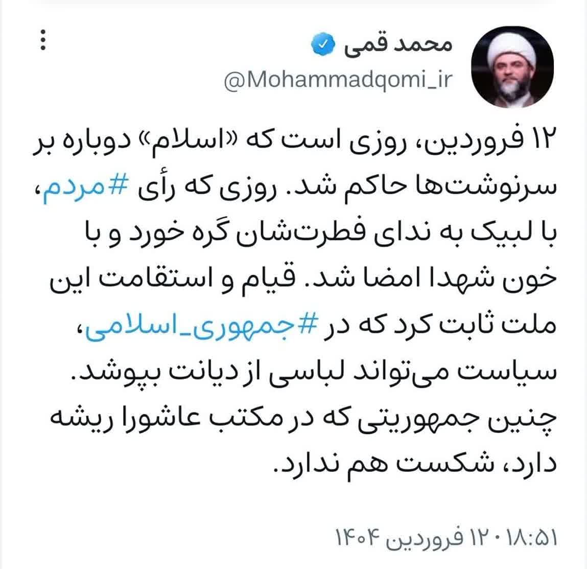 ۱۲ فروردین | حجت‌الاسلام قمی در صفحه شخصی خود نوشت؛