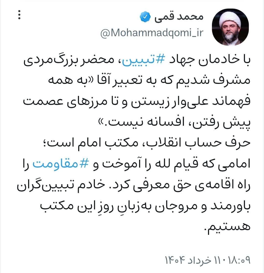۱۳ خرداد | حجتالاسلام محمد قمی در صفحه شخصی خود نوشت؛