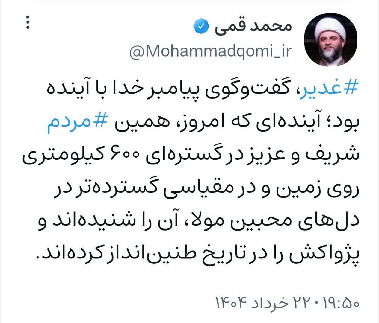 ۲۲ خرداد | حجتالاسلام قمی در صفحه شخصی خود نوشت؛