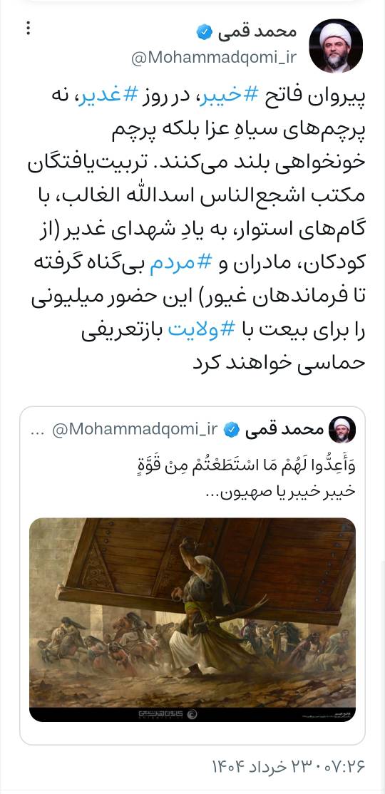 ۲۳ خرداد | حجتالاسلام قمی در صفحه شخصی خود نوشت؛