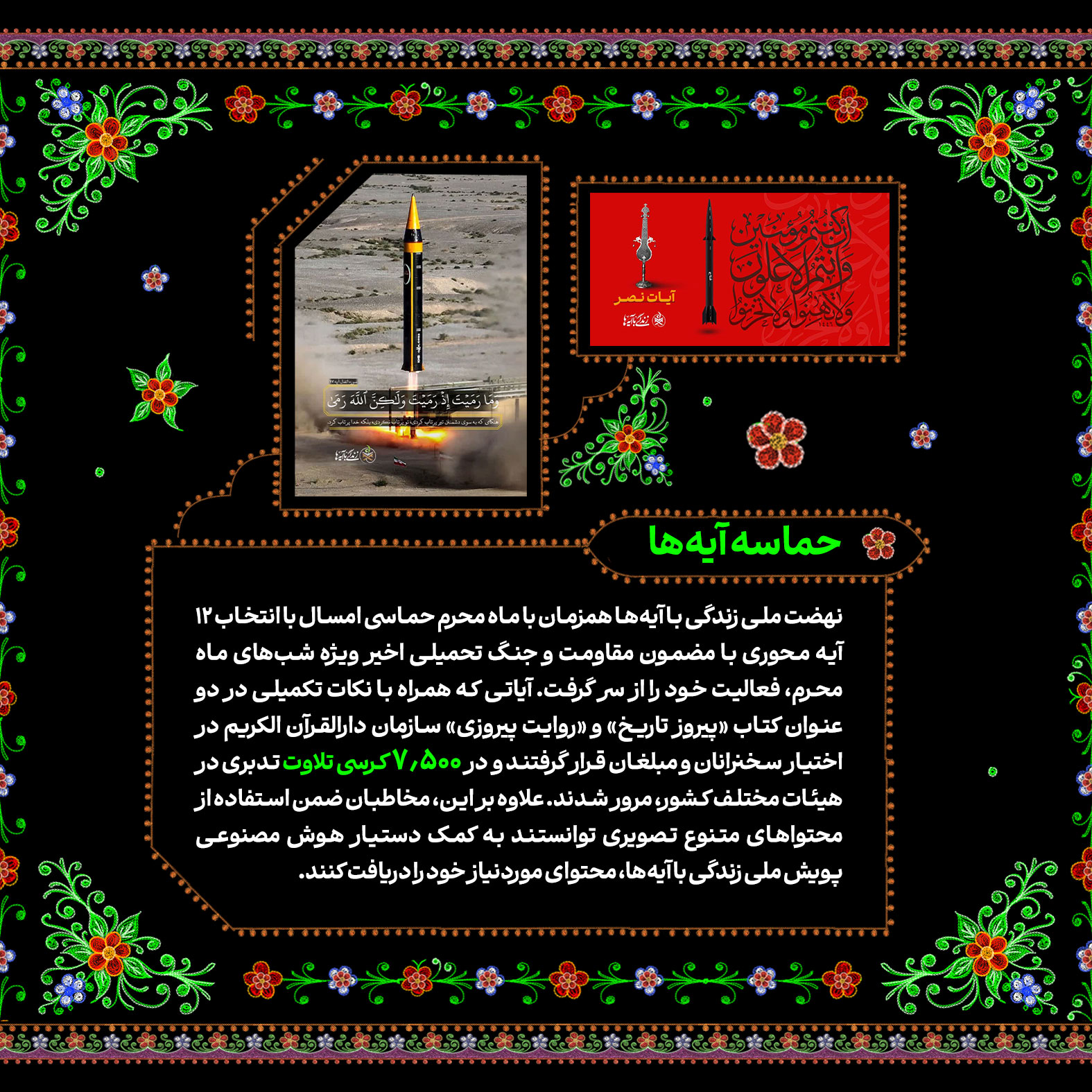 تاریخسازی مردم ایران در ماه محرم امسال تماشایی و پر افتخار بود. مسیری که در روز عید غدیر و درست ساعاتی پس از حمله رژیم صهیونیستی به خاک کشورمان با حضور قاطعانه و ۱۴ میلیونی در راهپیمایی ایران ذوالفقار علی در سراسر کشور آغاز شد و با برگزاری پرشور هیئات محرمی به اوج رسید؛ پیوندی از آیین ایرانی و مکتب حسینی با شعار «ایران حسین تا ابد پیروز است». در این شماره از نشریه دیجیتال مروری کردهایم بر تلاشهای خانواده سازمان تبلیغات اسلامی در ماه محرم امسال.