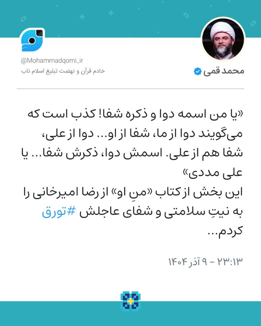 ۹ آذر | حجتالاسلام محمد قمی در پی انتشار خبر سانحه برای رضا امیرخانی نوشت؛