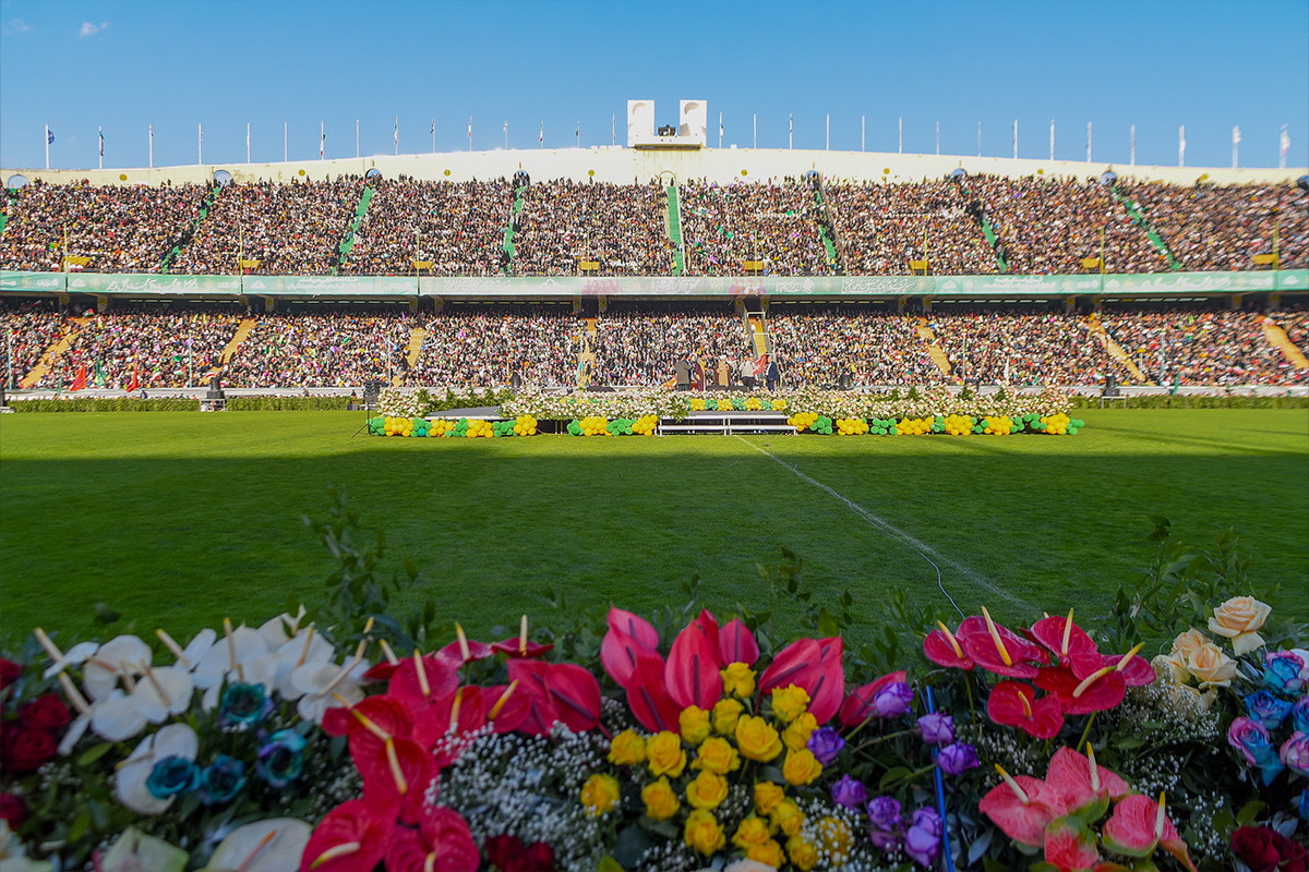 “伊玛目哈桑追随者”古兰经集会今天从۱۵:۳۰到۱۸:۳۰在阿扎迪体育场盛大举行,家人热情参与其中。